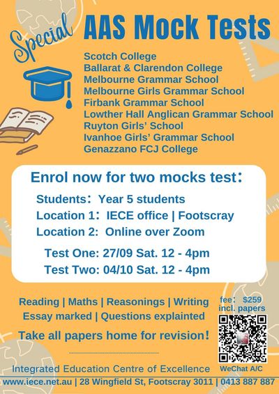 Join our 2-part mock exam series for students preparing to sit the AAS exam for entry into top schools such as Scotch College, Melbourne Grammar School, and more.